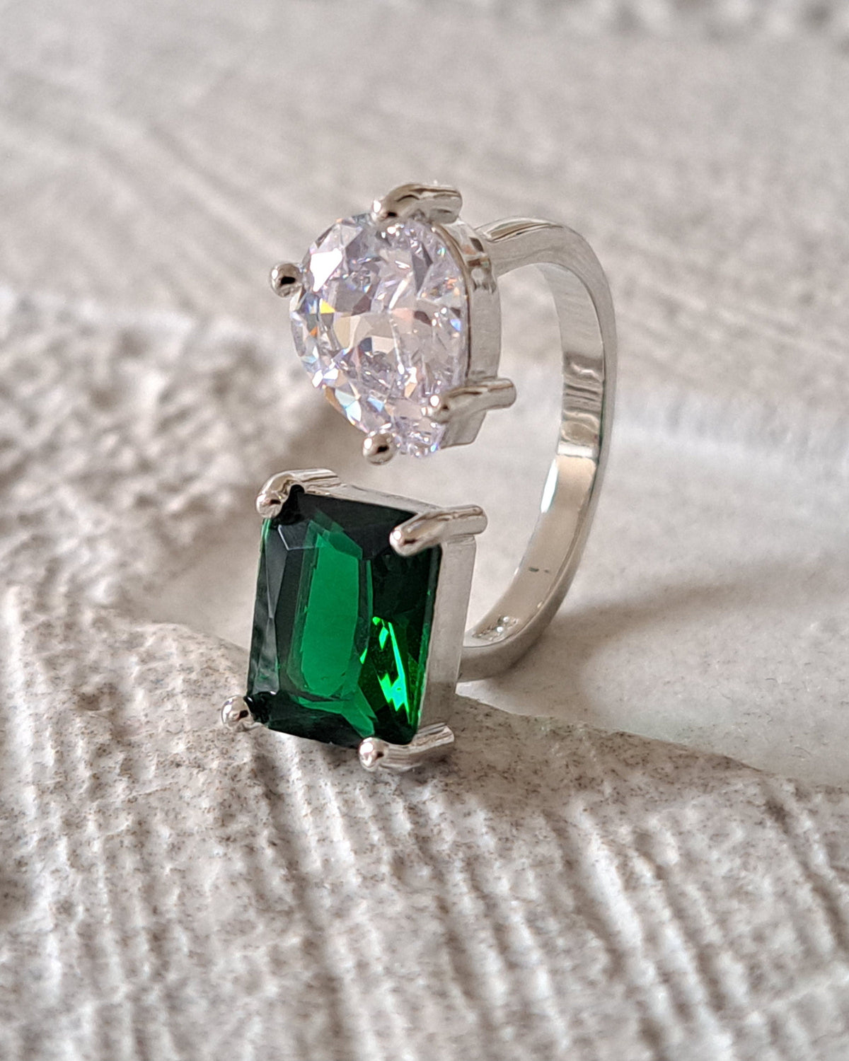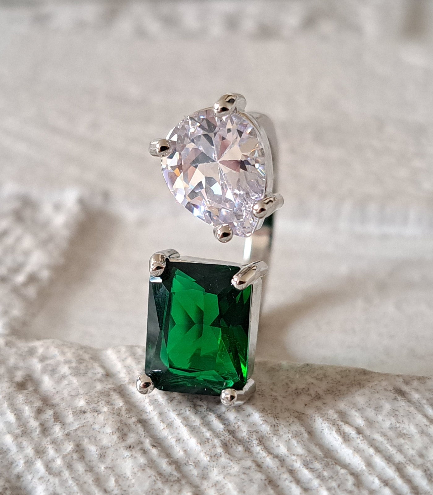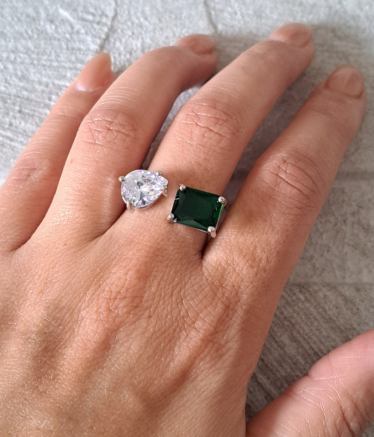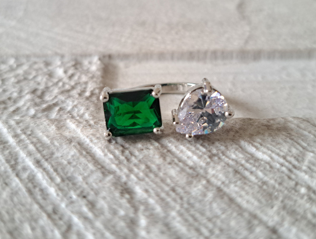 Silver Green Swarovski Crystal Adjustable Open Ring