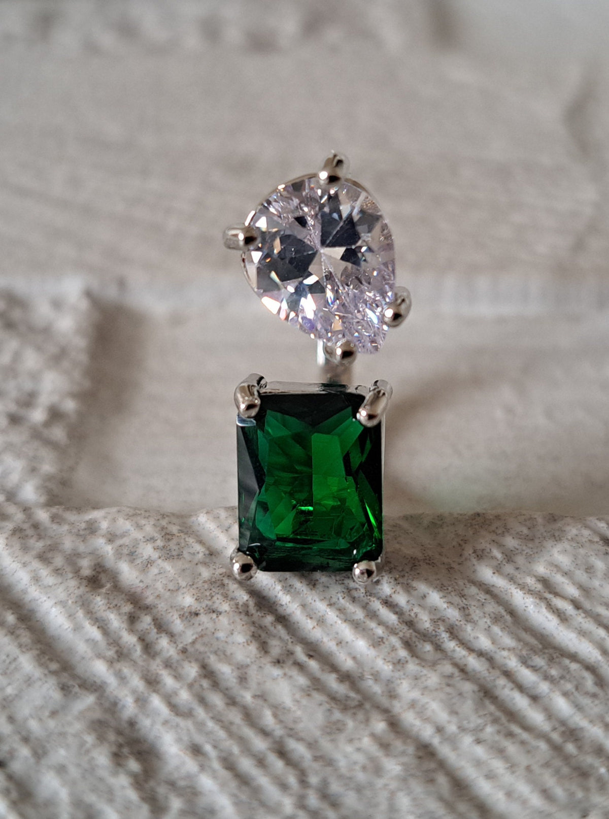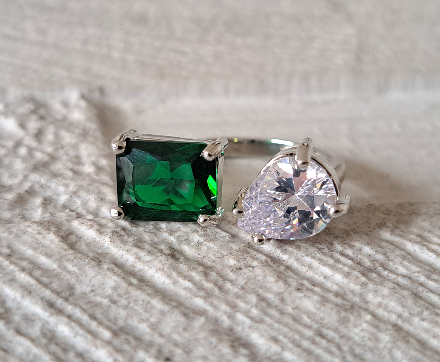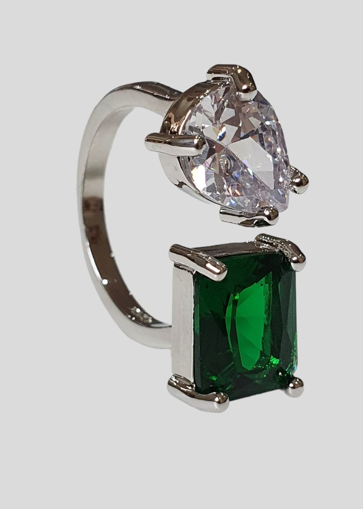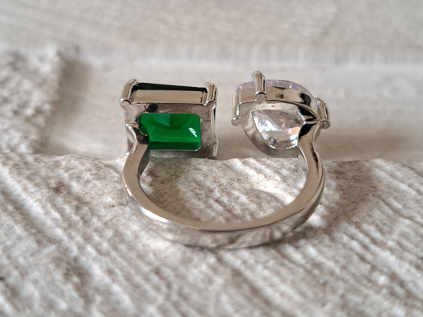 Silver Green Swarovski Crystal Adjustable Open Ring